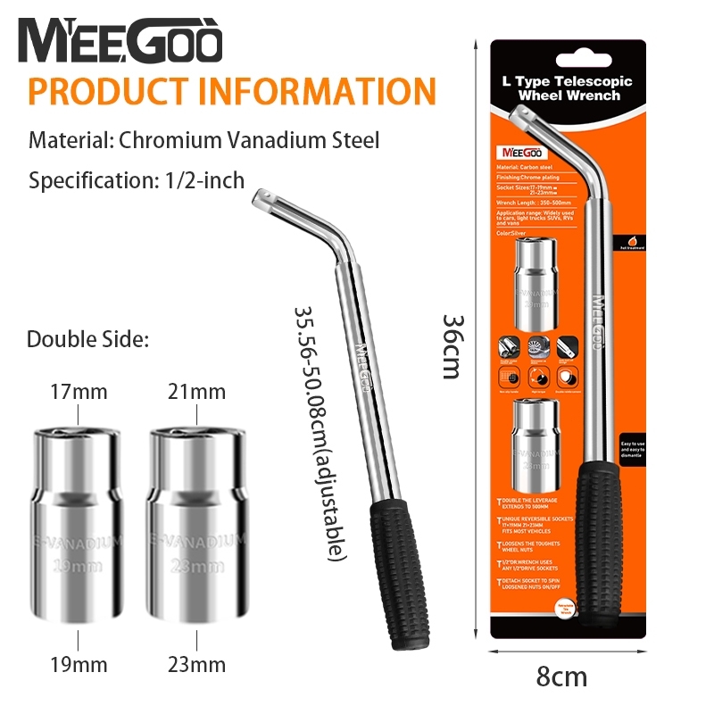 Chi tiết sản phẩm của Bộ cờ lê tháo đai ốc bánh xe dạng ống lồng chính hãng 17/19/21/23MM Giá đỡ ổ cắm có thể kéo dài Dụng cụ làm lốp xe hơi